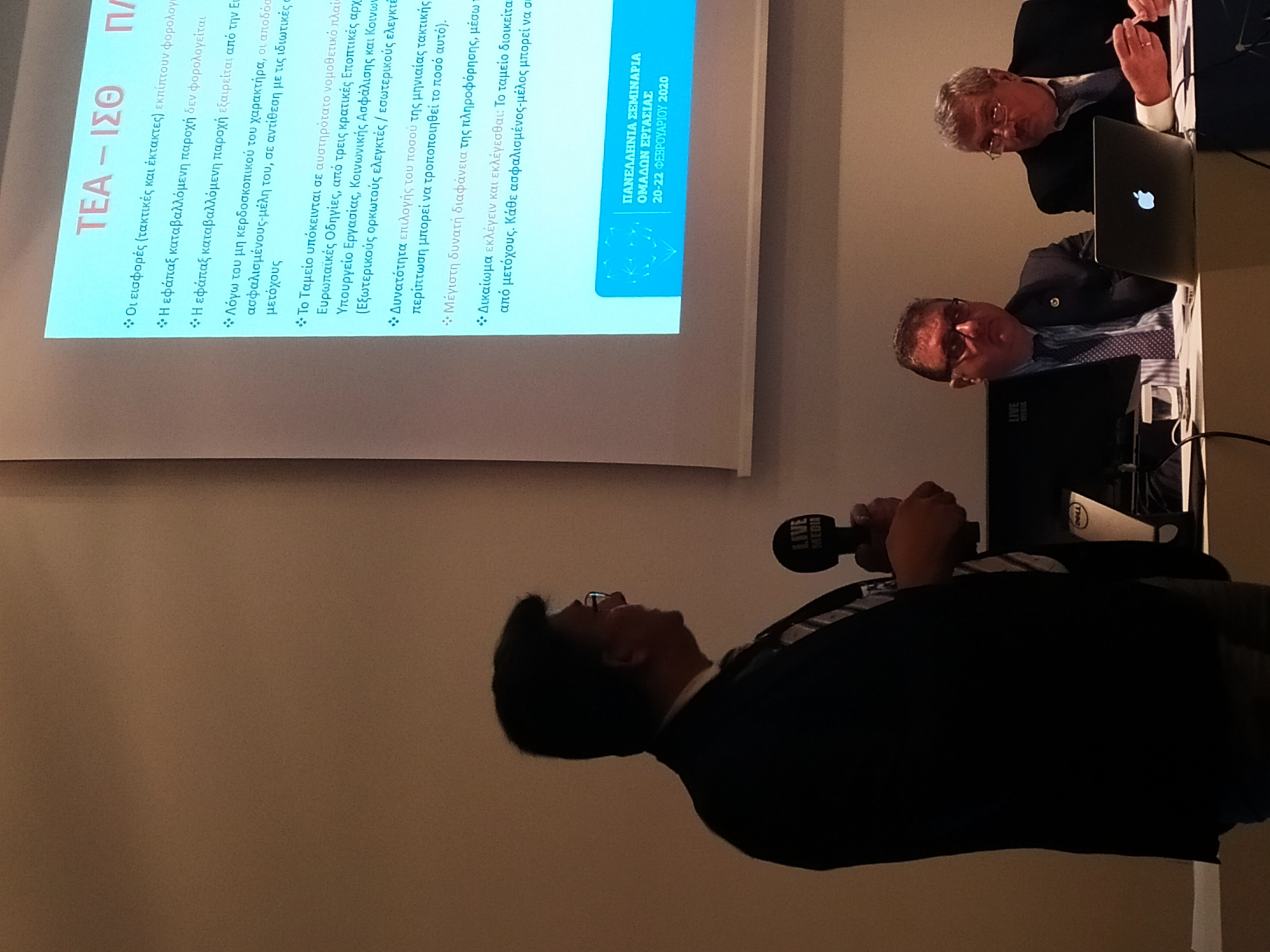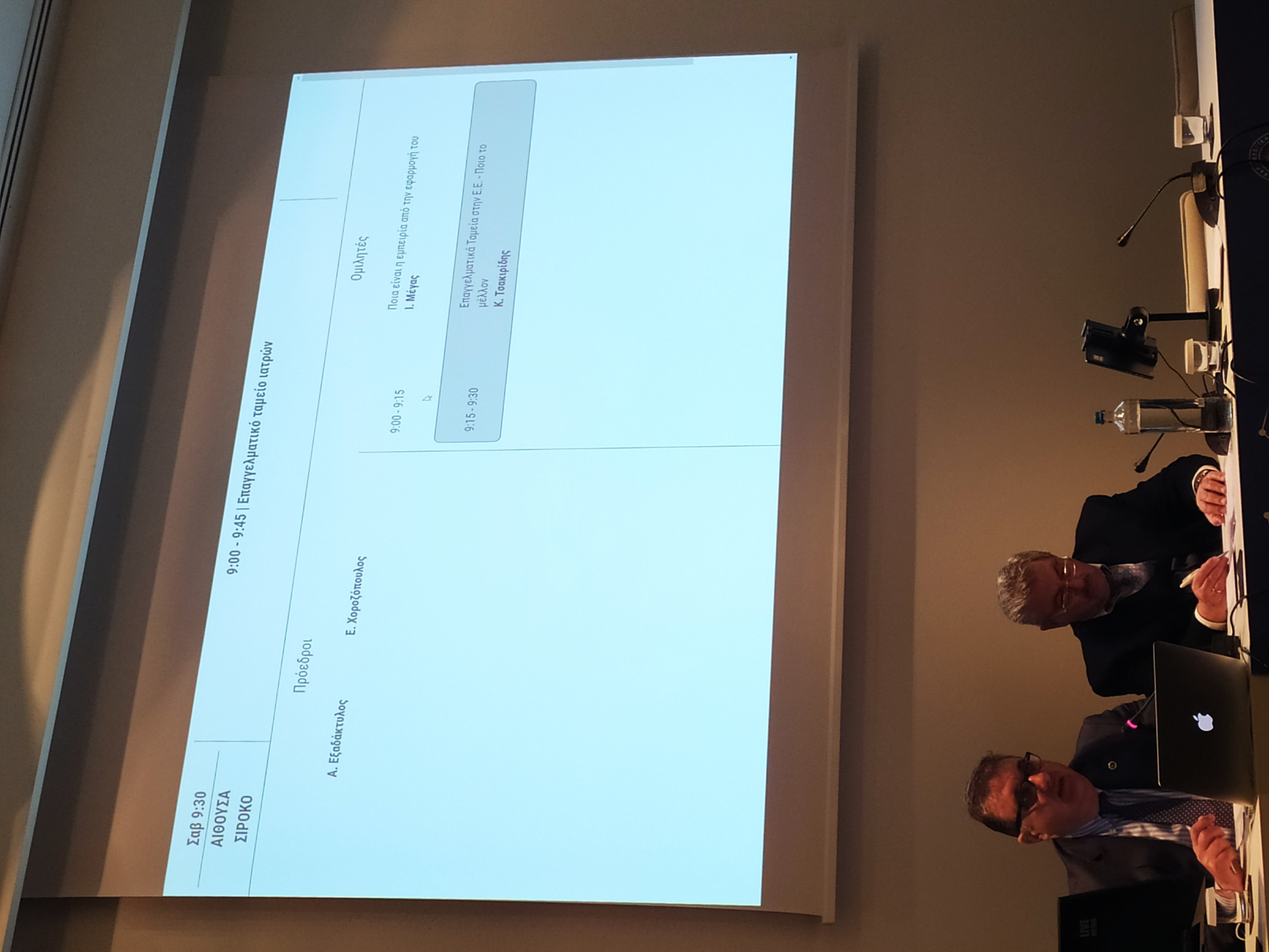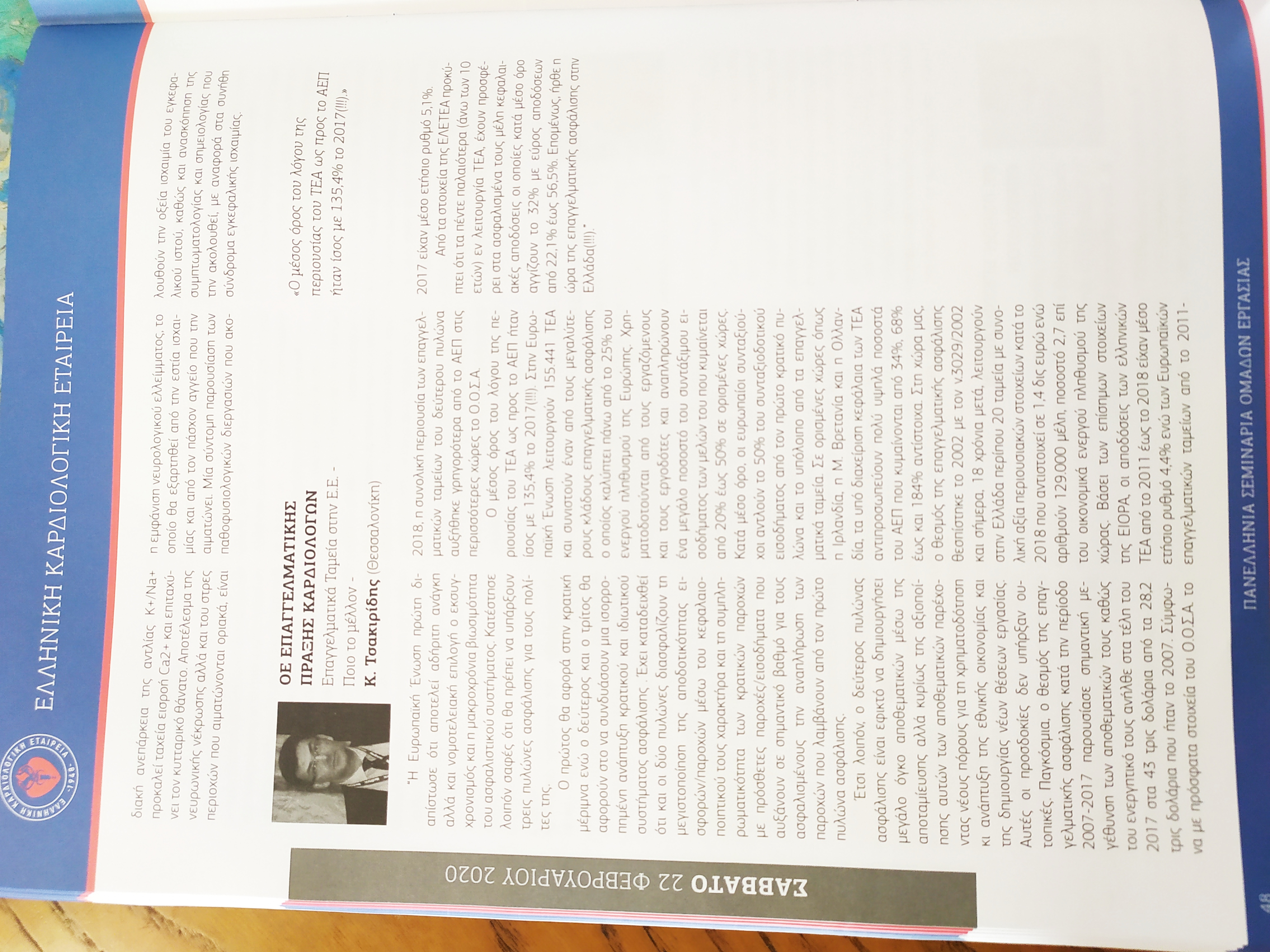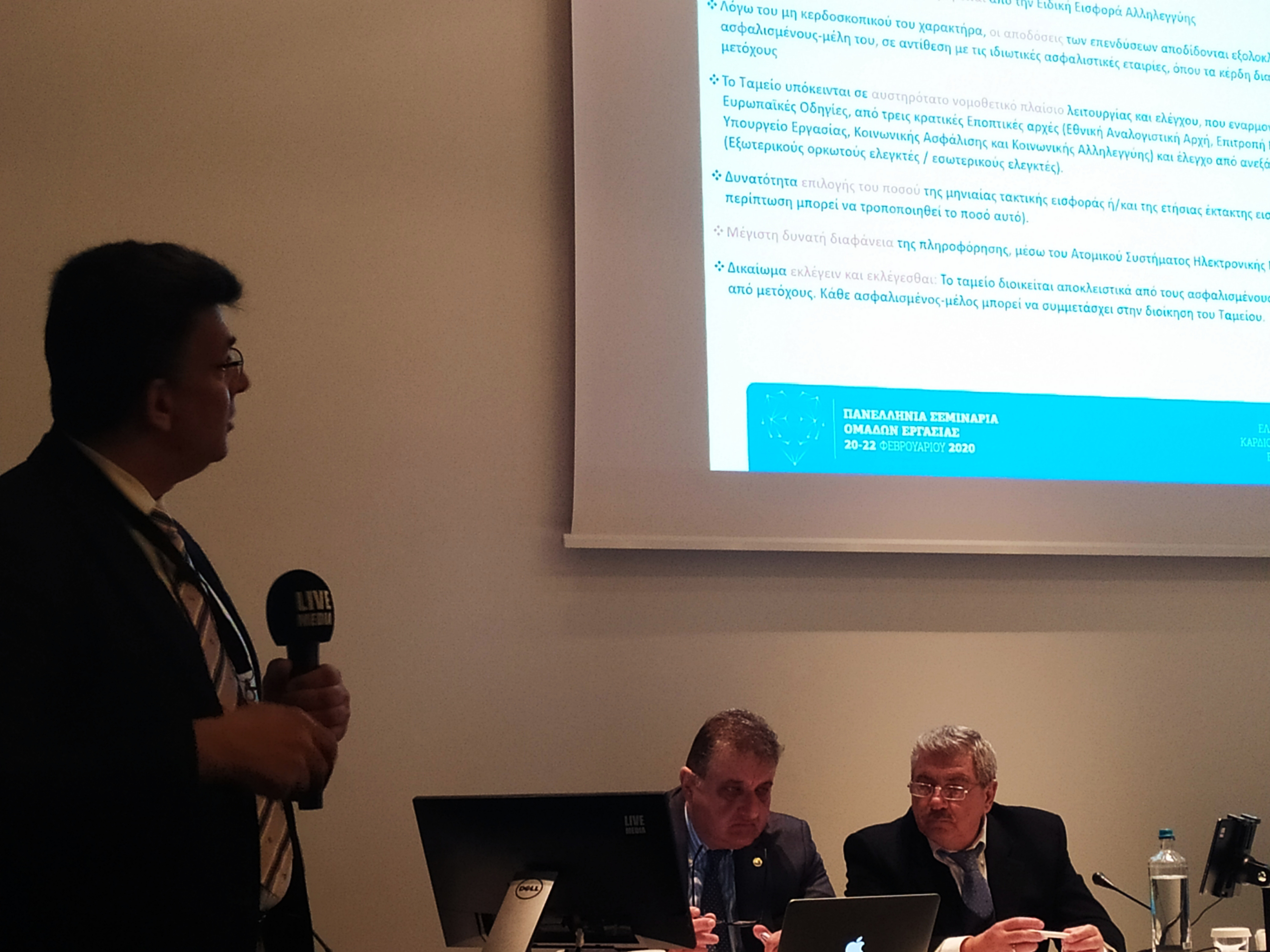 Eισήγηση του Αντιπροέδρου του ΤΕΑ ΙΣΘ ΝΠΙΔ και Ταμία της ΕΛ.Ε.Τ.Ε.Α, Δρ.Τσακιρίδη Κοσμά, στα Πανελλήνια Σεμινάρια Ομάδων Εργασίας 2020 της Ελληνικής Καρδιολογικής Εταιρείας (22-2-2020, Θεσσαλονίκη) με θέμα "Επαγγελματικά Ταμεία στην Ευρωπαική Ένωση. Ποιο το μέλλον".